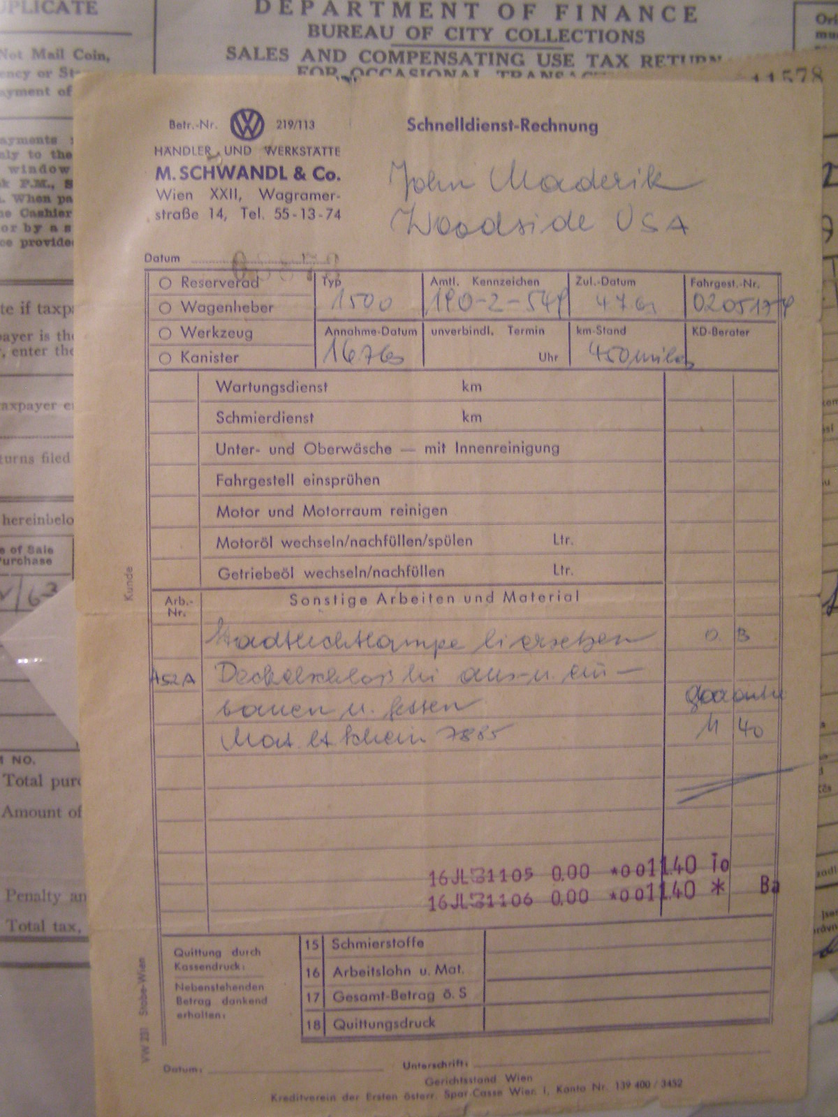 thanking Mr. Maderik for his purchase, in German of course, the cars' passport,